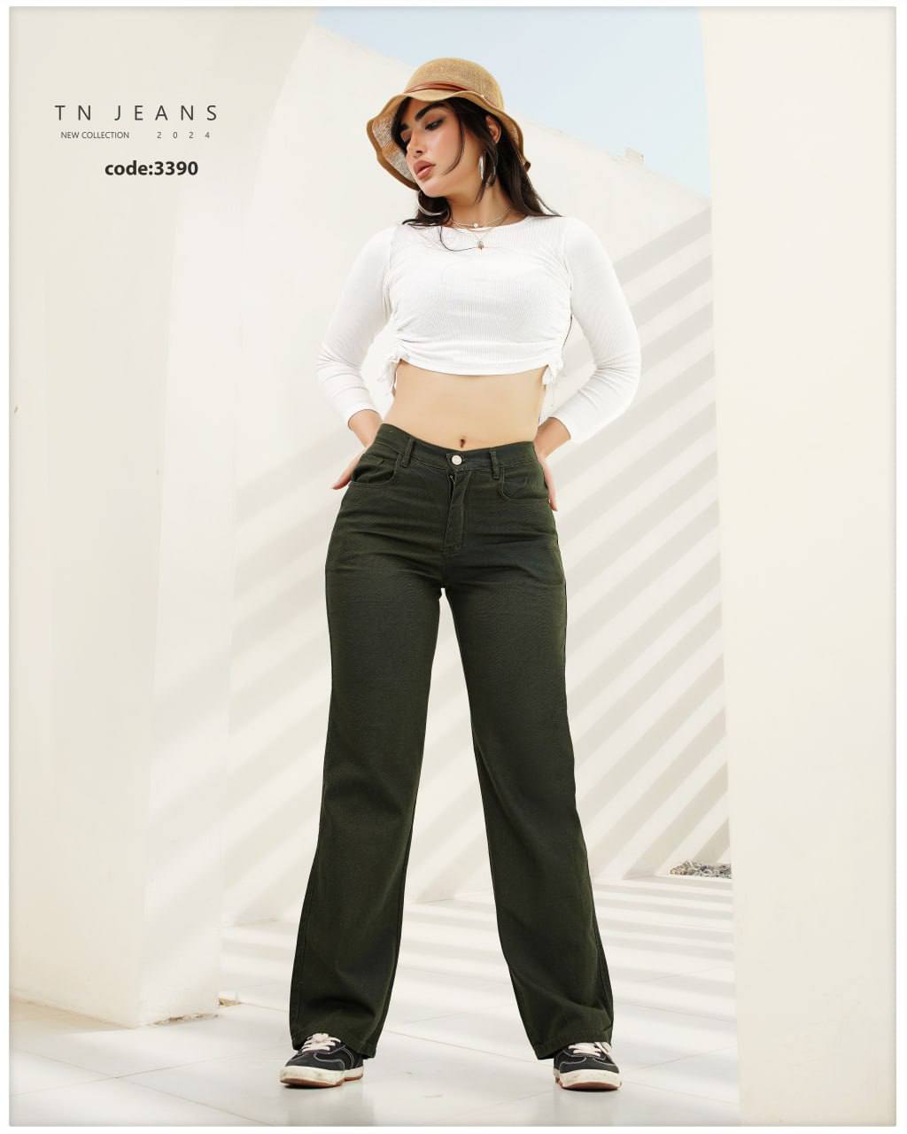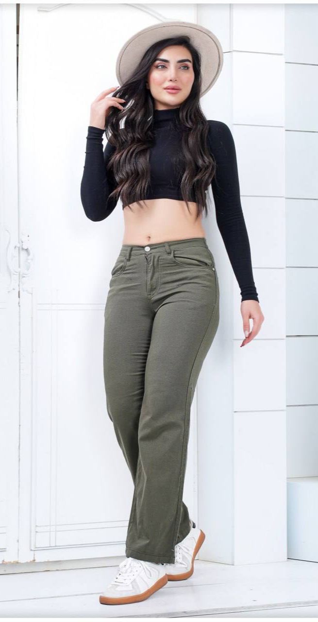 شلور کتان رنگ یشمی زنانه نیم بگ